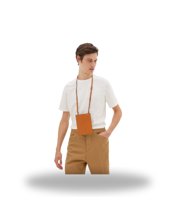 Designed for travel or daily organisation, the Crossbody Soft Document Holder keeps essentials close at hand. Its adjustable strap allows versatile wear—across the body, as a wrist bag, or tucked into totes and backpacks. Showcasing two Valextra hallmarks—our textured Millepunte calfskin and signature Havana Brown shade—it offers a central compartment and two card slots to neatly store passports, documents, wallets, and cards. Finished with black lacquered Costa edging and hand-painted Inchiostro lines, it embodies refined artisanal craftsmanship.