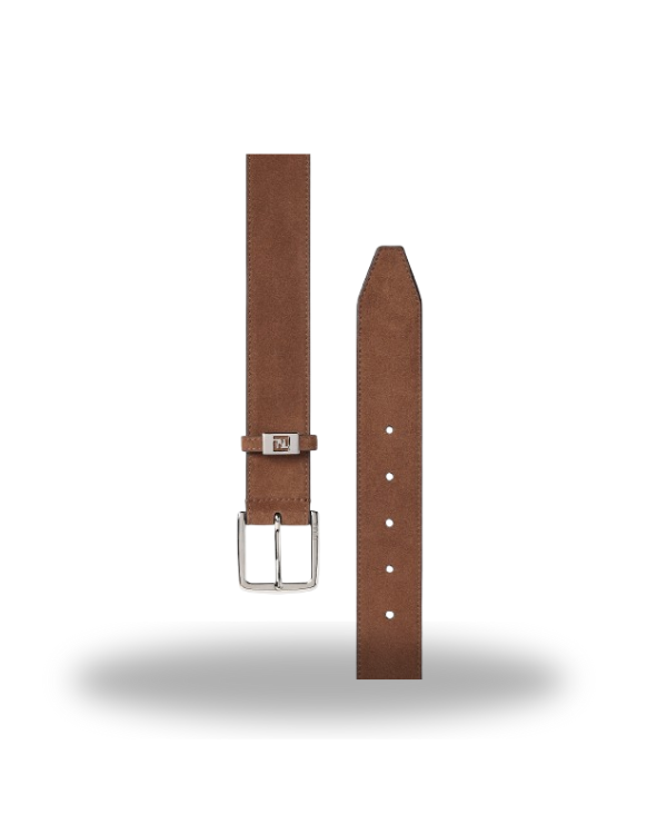 Brown suede belt featuring a pin buckle and loops with the iconic LF detail. Accented with palladium-finish metal hardware for a sleek touch. Expertly crafted in Italy.
