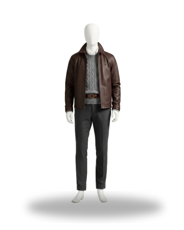 Designed with a point collar and buttoned throat latch, this jacket features a full-zip front with a leather pull and signature buttons. Long sleeves include adjustable buttoned cuffs and underarm metal grommets for ventilation. Functional details include two angled waist pockets and an interior left chest pocket, while adjustable buttoned tabs at the back waist ensure a tailored fit.